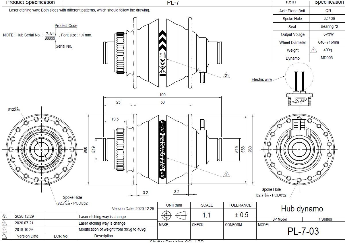 Moyeu PL7, noir, 32 trous, centerlock, axe 12mm x 100
